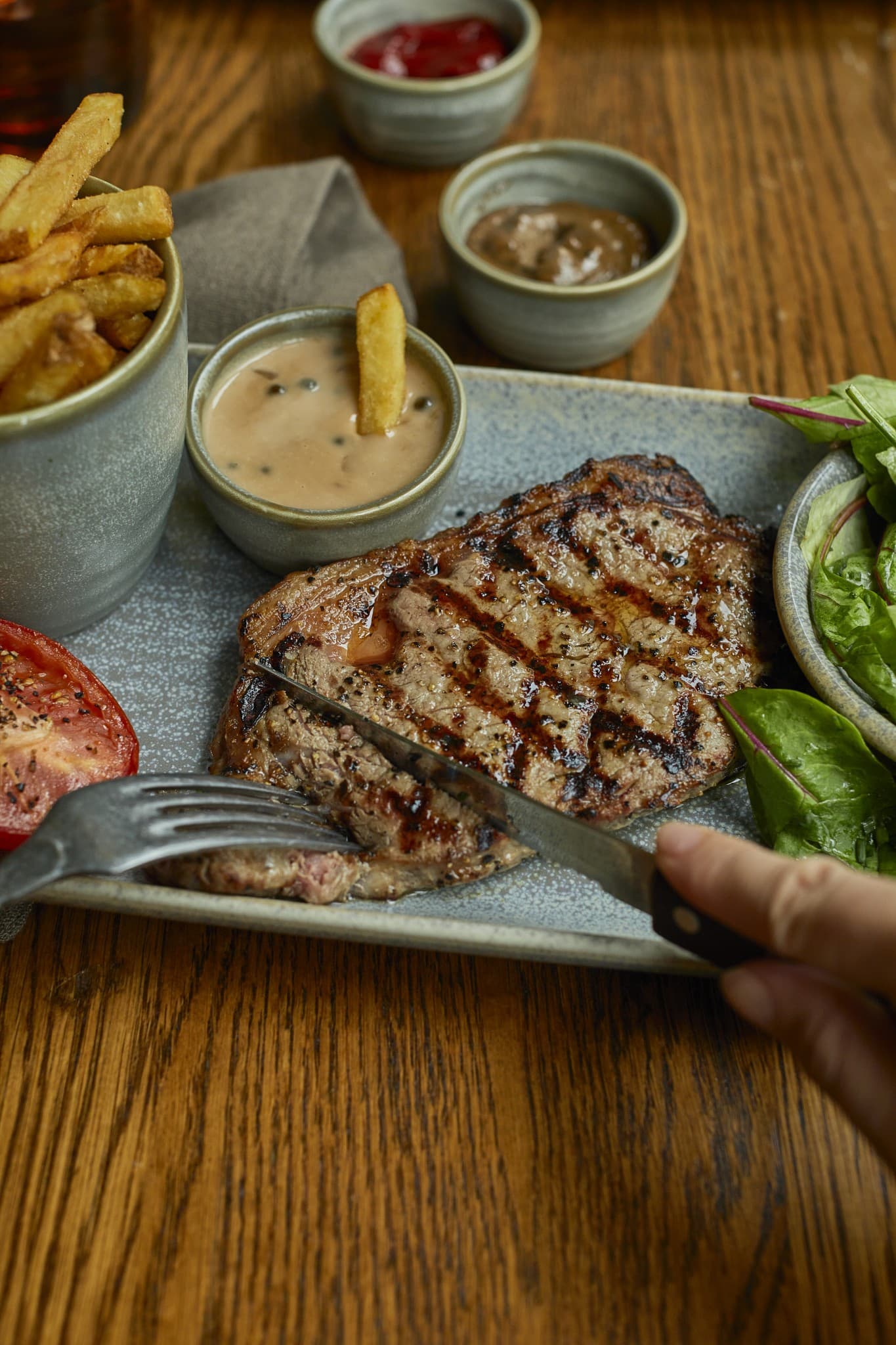 We’re raising the steaks this St George’s Day with an irresistible offer: enjoy a complimentary bottle of wine when you order any two of our succulent, 30-day dry-aged steaks – and for one day only, it’s available all day long.